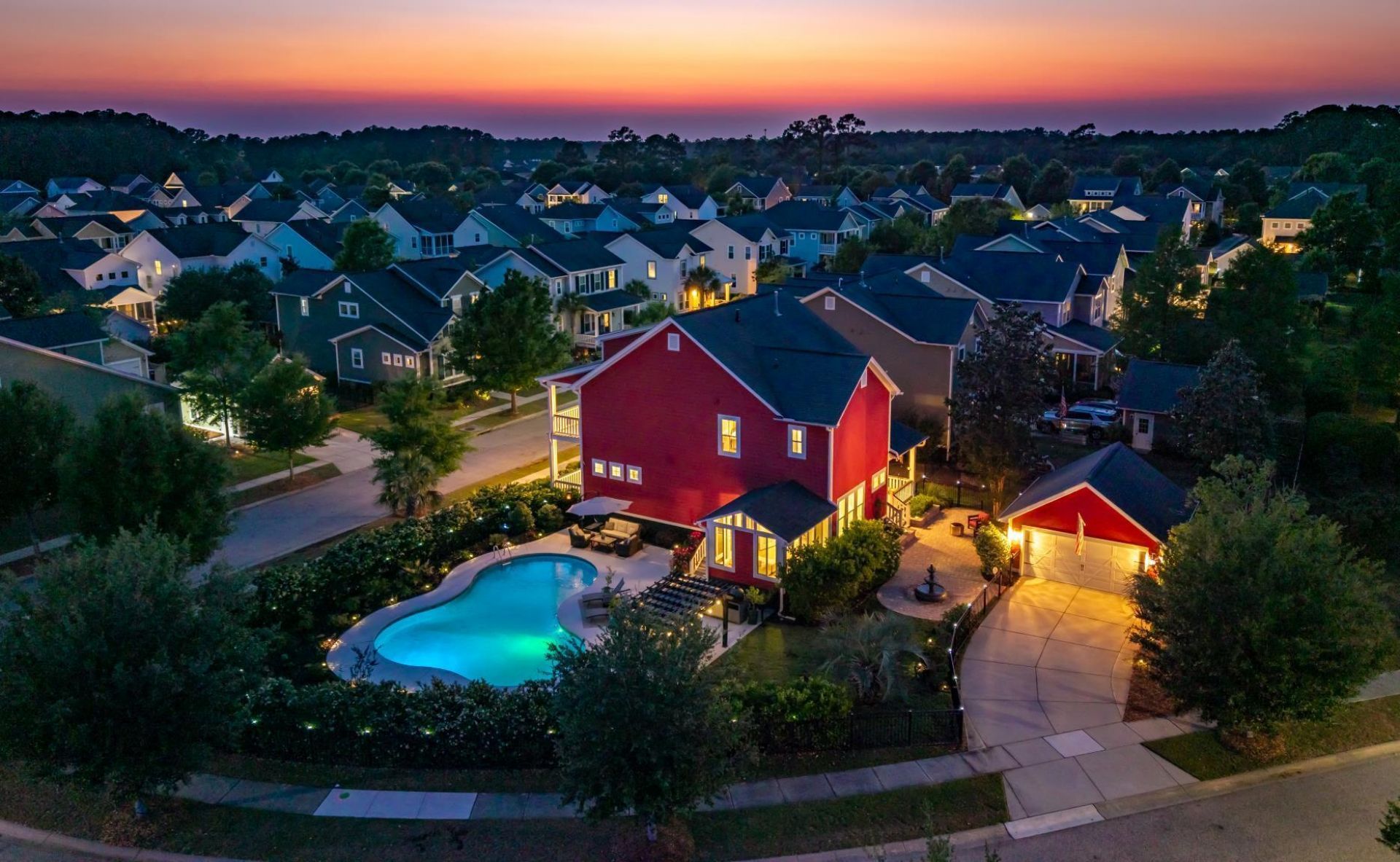 Experience the epitome of Lowcountry elegance in this extraordinary home, perfectly positioned on one of the largest lots in the highly coveted Carolina Park neighborhood. Featuring a sparkling, saltwater pool and lush landscaping, this stunning residence offers over 3,000 square feet of refined living space designed for both gracious entertaining and quiet retreat. The home's architectural beauty is enhanced by stacked front porches, creating timeless curb appeal and offering multiple outdoor spaces to enjoy the tranquil surroundings. In addition, a spacious patio provides the ideal setting for evening gatherings beneath the stars. Situated on a generous .27 acre lot, this home uniquely borders permanent HOA green space, ensuring your privacy is protected and providing a natural bufferthat makes the yard feel exceptionally expansive and secluded.Inside the open-concept layout is both grand and welcoming, anchored by a sophisticated great room with a gas fireplace and abundant natural light. The gourmet kitchen is a true showpiece, featuring high-end appliances, custom cabinetry, and elegant countertops perfect for casual dining or entertaining. Thoughtfully designed for modern living, the main level also includes a dedicated home office space and two dining spaces, one formal with a butler's pantry and the other occupying a nook in the kitchen providing flexibility and privacy for today's lifestyle needs. Off the breakfast nook, you'll find a quiet spot to relax in the all-weather room which leads out to the spacious yard and pool.Upstairs, each of the four bedrooms is a serene retreat, one which has private access to one of the home's expansive porches, blending indoor and outdoor living in true Charleston style. Throughout the home, luxury finishes, refined details, and meticulous craftsmanship create an atmosphere of effortless sophistication.Set within the established and amenity-rich community of Carolina Park, residents enjoy access to resort-style pools, tennis and pickleball courts, walking trails, beautifully maintained parks, as well as incredible views of the Wando River. Additionally, this home is just a short 5-minute walk to two top rated schools, Carolina Park Elementary and Wando Highschool. The location offers the perfect balance of privacy and convenience just minutes from pristine beaches, Mount Pleasant's premier shopping and dining, and the historic charm of downtown Charleston.This remarkable residence offers a rare opportunity to own one of Carolina Park's most distinguished homes where elegance, privacy, and Lowcountry living come together in perfect harmony.